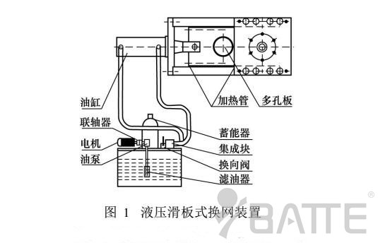 液壓滑板式連續換網裝置,它通過液壓缸活塞的推力,將裝有兩個分流過濾網孔的滑板往復移動,臟網推出更換,新網安裝后推進,實現瞬間快速換網。該換網裝置結構緊湊,操作方便快捷,在不停機狀態下換網工作在1-2s內就可完成。實現不停機換網,可避免因換網而造成的生產停頓、原材料與能源損失,有利于節約成本,在塑料擠出生產線上使用較多。但液壓滑板式器的換網裝置在結構上存在著一個較大缺陷。